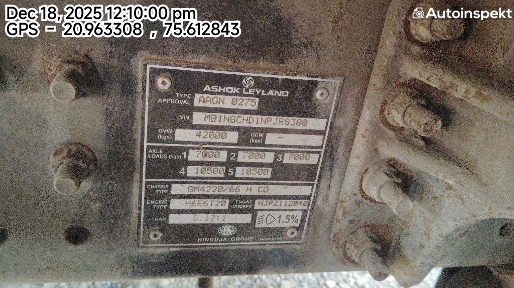 Vehicle is in Average condition key not available odometer reading not taken, load body missing